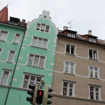Ist Mintgrün ein geeigneter Farbton zur Fassadengestaltung? An diesem Haus in Konstanz wirkt das Grün künstlich und zu dick aufgetragen. Der Grünton steht ganz für sich allein – er hat keinen Bezug…